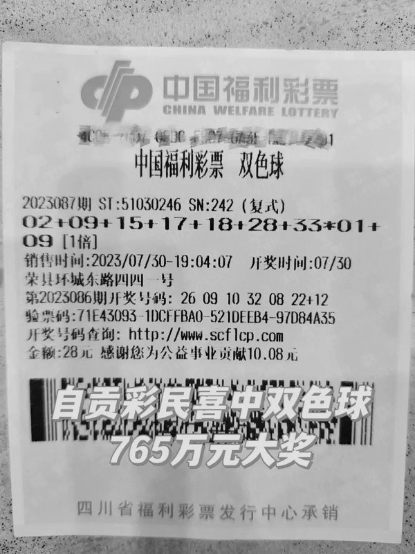 据检索,自贡一等奖中奖彩票为一张28元的“7+2”复式票,出自自贡市荣县环城东路福彩第51030246号投注站,收获奖金765万元。