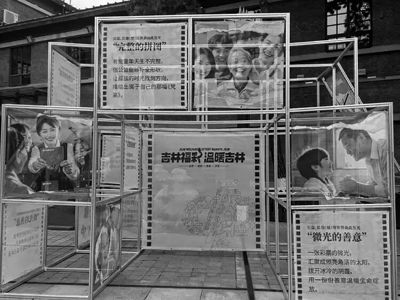 长影作为承载几代人记忆的文化地标,其经典的胶片质感、复古的影视场景,成为解读福彩公益实践的独特语言。展览围绕“‘影’‘益’共生”原则划分三大核心展区,每一处设计都紧扣“胶片”元素——仿胶片材质的公益海报、复刻长影老胶片盒的展示载体、老电影字幕风格的“影”读屏,仿佛将福彩的公益历程“拍摄”成一部光影纪录片。这种创新形式,让原本冰冷的文字数据变得鲜活可感,让公众从“被动读报告”变为“主动品公益”,在触碰长影历史文化的同时,直观感知福彩公益金从筹集到投入的全流程,实现公益传播从“信息传递”到“情感共鸣”的跨越。